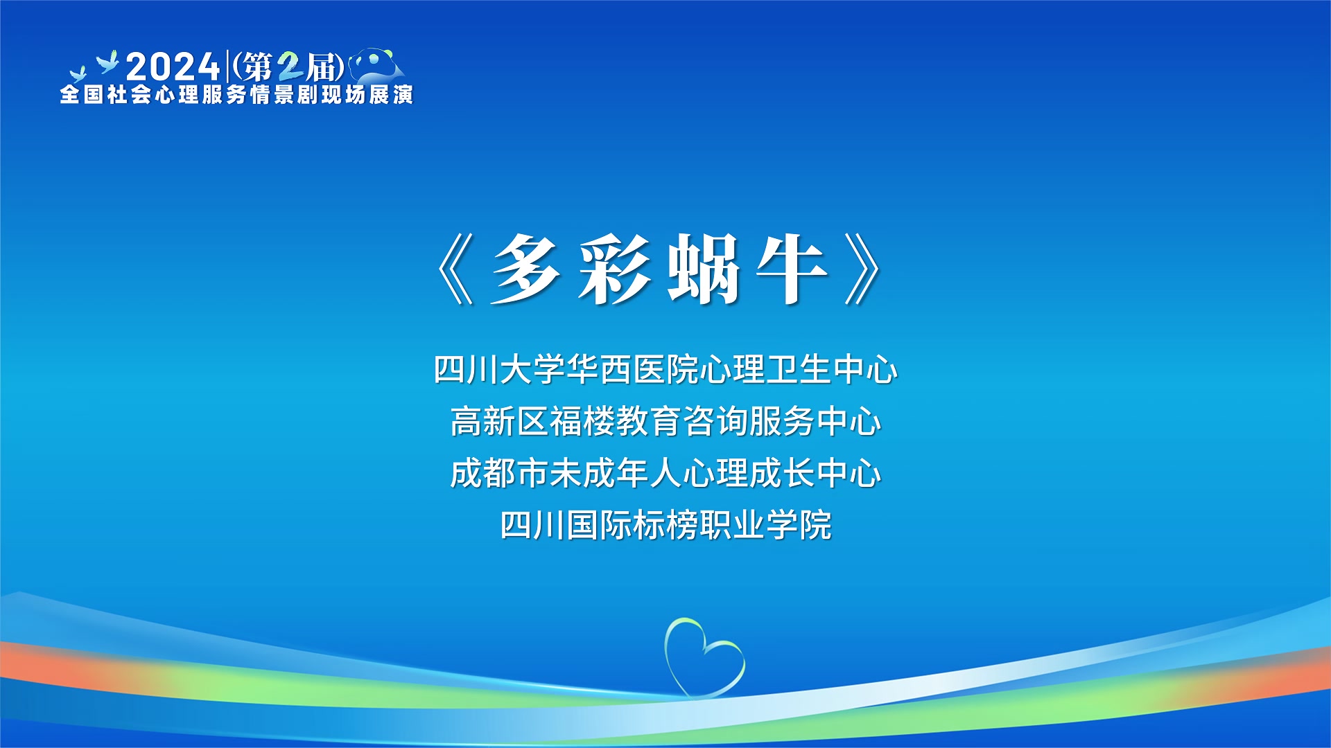 为深入贯彻党的二十大精神和健康中国战略要求,推进社会心理服务体系建设,以群众喜闻乐见的方式宣传普及心理健康知识,提高居民心理健康素养水平,促进形成“自尊自信、理性平和、积极向上”的社会心态,2023年9月,国家心理健康和精神卫生防治中心、中国人口文化促进会联合中共安徽省宿州市委政法委员会、宿州市卫生健康委员会共同主办全国社会心理服务情景剧展演活动,共收到来自全国22个省55个地区的143部参赛作品,经专业评审专家组初筛,共有50个作品被评为优秀剧目,其中30个剧目参加此次展演。